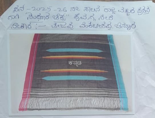 ಇವರು ದಿ ಗಜೇಂದ್ರಗಡ ನೇಕಾರರ ಸಹಕಾರಿ ಉತ್ಪಾದಕ ಸಂಘ ನಿ. ಗಜೇಂದ್ರಗಡ ಸಂಘದಿAದ ಕಚ್ಚಾಮಾಲು ಪಡೆದು ನಿಯಮಿತವಾಗಿ “ಪಟ್ಟೆದ ಅಂಚಿನ ಸೀರೆ“ ಗಳನ್ನು ಉತ್ಪಾದಿಸುತ್ತಿದ್ದಾರೆ. ಈ ನೇಕಾರರು ಪ್ರಸ್ತುತ “ಪಟ್ಟದ ಅಂಚು ಸೀರೆ”ಯ ತಯಾರಿಕೆಯಲ್ಲಿ ಉಪಯೋಗಿಸುವ ನೈಸರ್ಗಿಕ ಅಂಟಿನಿAದ ತಯಾರಿಸಿದ ವಾರ್ಫಿನ ಮೇಲೆ ಕೊಂಡಿ ತಂತ್ರಜ್ಞಾನ ಹಾಗೂ ಬುಟ್ಟಾ ತಿರುಕಿ ಮಾಡಕೊಂಡು “ಸಿಂಧೂರ ಚೆಕ್ಸ ಸೀರೆ”ಯನ್ನು ತಯಾರಿಸಿರುತ್ತಾರೆ. ಸದರಿ “ಸಿಂಧೂರ ಚೆಕ್ಸ ಸೀರೆ”ಗೆ 2025-26ನೇ ಸಾಲಿನ ಹತ್ತಿ ವಿಭಾಗದಲ್ಲಿ ರಾಜ್ಯ ಮಟ್ಟದ ಕೈಮಗ್ಗ ನೇಕಾರರ ಪ್ರಶಸ್ತಿ ದೊರೆತಿರುತ್ತದೆ. ಸದರಿ ನೇಕಾರರಿಗೆ ದಿನಾಂಕ:07-08-2025ರAದು ರಾಜ್ಯ ಸರ್ಕಾರಿ ನೌಕರರ ಭವನ ಕಬ್ಬನ್ ಪಾರ್ಕ ಬೆಂಗಳೂರನಲ್ಲಿ ಜರುಗುವ 11 ನೇ ರಾಷ್ಟಿçÃಯ ಕೈಮಗ್ಗ ದಿನಾಚರಣೆಯಲ್ಲಿ ರೂ.20,000/-ಗಳ ಬಹುಮಾನ ಹಾಗೂ ನೆನಪಿನ ಕಾಣಿಕೆ ನೀಡಿ ಸನ್ಮಾನಿಸಲಾಗುವುದು. ಹಾಗೂ ಕೇಂದ್ರ ಸರ್ಕಾರದಿಂದ ಇವರಿಗೆ 60ವರ್ಷ ಆದ ನಂತರದಿAದ ಅಂತ್ಯ ಕಾಲದವರೆಗೆ ಮಾಸಿಕ ರೂ.8000/-ಗಳ ವೃದ್ಯಾಪ್ತ ವೇತನ ನೀಡಲಾಗುವುದು.