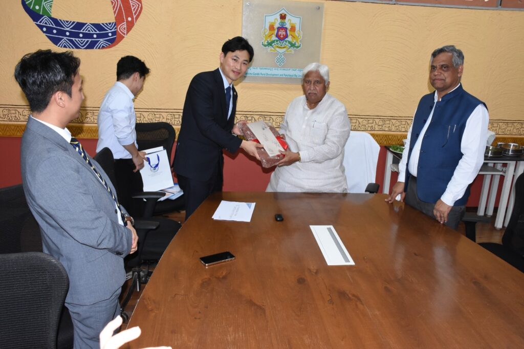ಗದಗ, ಆಗಸ್ಟ್ 9,ಮಹಾತ್ಮ ಗಾಂಧಿ ಗ್ರಾಮೀಣಾಭಿವೃದ್ಧಿ ಮತ್ತು ಪಂಚಾಯತ್ ರಾಜ್ ವಿಶ್ವವಿದ್ಯಾಲಯದಲ್ಲಿ ಸೌತ್ ಕೋರಿಯಾದ ವಿಶ್ವ ಶಾಂತಿ ಸಂಸ್ಥೆ HWPL ಪ್ರತಿನಿಧಿಗಳು ವಿಶ್ವವಿದ್ಯಾಲಯದ ಭೇಟಿ ಅಂಗವಾಗಿ ಶನಿವಾರ ಮಾನ್ಯ ಕಾನೂನು, ನ್ಯಾಯ, ಮಾನವ ಹಕ್ಕುಗಳು, ಸಂಸದೀಯ ವ್ಯವಹಾರಗಳು, ಶಾಸನ ರಚನೆ ಹಾಗೂ ಪ್ರವಾಸೋದ್ಯಮ ಸಚಿವರಾದ ಡಾ. ಎಚ್. ಕೆ. ಪಾಟೀಲ ಅವರನ್ನು ಭೇಟಿ ಮಾಡಿ ಸಂವಾದ ನಡೆಸಿದರು.