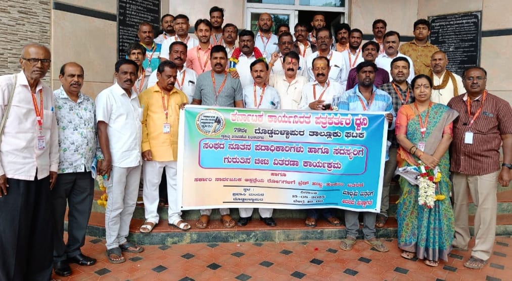 ಜೊತೆಗೆ ಎಲ್ಲಾ ಸದಸ್ಯರುಗಳಿಗೆ ಗುರುತಿನ ಕಾರ್ಡ್ ಗಳನ್ನು ಕಾನಿಪ ಧ್ವನಿ ರಾಜ್ಯಾಧ್ಯಕ್ಷರಾದ ಬಂಗ್ಲೆ ಮಲ್ಲಿಕಾರ್ಜುನ ವಿತರಿಸುವಂತ ಸಂದರ್ಭದಲ್ಲಿ ರಾಜ್ಯ ಕಾರ್ಯದರ್ಶಿಗಳಾದ ದೇವರಾಜ್, ಬೆಂಗಳೂರು ಗ್ರಾ.ಜಿಲ್ಲಾಧ್ಯಕ್ಷರಾದ ಸಿದ್ದರಾಜು,ಪ್ರಧಾನ ಕಾರ್ಯದರ್ಶಿಗಳಾದ ರಾಧಕೃಷ್ಣ,ರಾಜ್ಯ ಕಾರ್ಯಕಾರಿ ಸದಸ್ಯರಾದ ಮಹೇಶ್,ಶರಣಪ್ಪ,ರಾಜು ಅಗಸ್ತ್ಯ,ಜಿಲ್ಲಾ ಪದಾಧಿಕಾರಿಗಳಾದ ಆನಂದ ಕುಮಾರ್,ಚೌಡರಾಜ್,ದೊಡ್ಡಬಳ್ಳಾಪುರತಾಲೂಕು ಅಧ್ಯಕ್ಷರಾದ ಮಂಜುನ ನಾಥ ಹಾಗೂ ಇನ್ನೀತರ ಪ್ರಮುಖರು ಹಾಜರಿದ್ದರು.