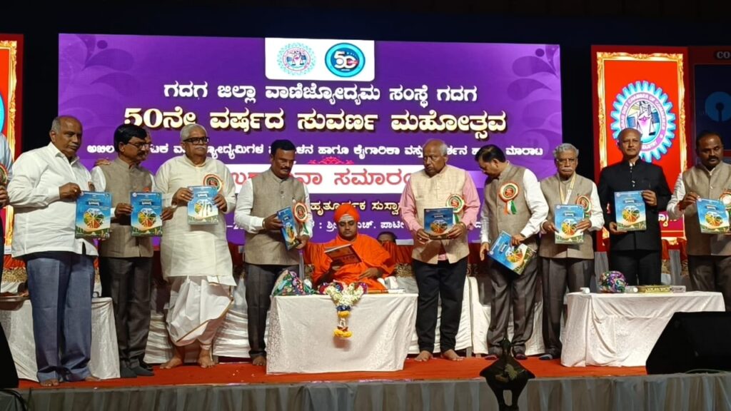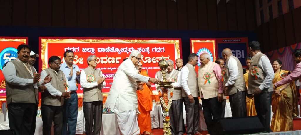ಗದಗ ಜಿಲ್ಲಾ ವಾಣಿಜ್ಯೋದ್ಯಮ ಸಂಸ್ಥೆ, ಗದಗ 50ನೇ ವರ್ಷದ ಸುವರ್ಣ ಮಹೋತ್ಸವ ಹಾಗೂ ಅಖಿಲ ಕರ್ನಾಟಕ ವಾಣಿಜ್ಯೋದ್ಯಮಿಗಳ ಸಮ್ಮೇಳನ ಹಾಗೂ ಕೈಗಾರಿಕಾ ವಸ್ತು ಪ್ರದರ್ಶನ ಹಾಗೂ ಮಾರಾಟ ಉದ್ಘಾಟನಾ ಸಮಾರಂಭದಲ್ಲಿ ಭಾಗವಹಿಸಿದ್ದರು .