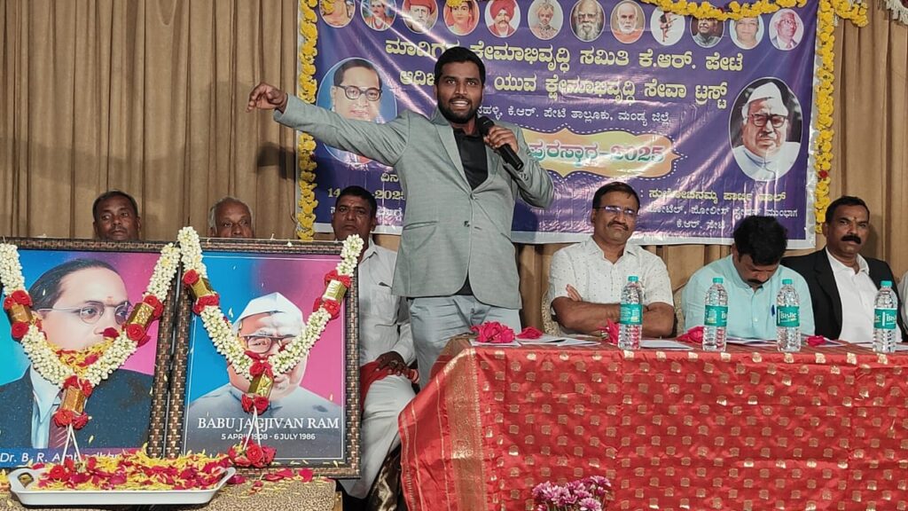 .ದೇಶಕ್ಕೆ ಸ್ವಾತಂತ್ರ್ಯ ಬಂದು 80 ವರ್ಷಗಳು ಸಮೀಪಿಸುತ್ತಿದ್ದರು . ಬಿಆರ್ ಅಂಬೇಡ್ಕರ್ ಅವರು ರಚಿಸಿದ ಸಂವಿಧಾನದ ಆಶಯಗಳು ಇಂದಿಗೂ ಸಮರ್ಥವಾಗಿ ಜಾರಿಯಲಿಲ್ಲ ಆದಿ ಜಾಂಬವ ಮಾದಿಗರ ಸಮುದಾಯದ ವಿದ್ಯಾವಂತ ನಿರುದ್ಯೋಗಿ ಯುವ ಜನರಿಗೆ ಮೀಸಲಾತಿಯ ಪ್ರಯೋಜನ ಹಾಗೂ ಒಳ ಮೀಸಲಾತಿಯು ಸಮರ್ಪಕವಾಗಿ ಜಾರಿಯಾಗಿಲ್ಲದಿರುವುದು ವಿಷಾಧಕರ ಸಂಗತಿಯಾಗಿದೆ. ಮಾದಿಗ ಸಮಾಜದ ಬಂಧುಗಳು ಶಿಕ್ಷಣದ ಮಹತ್ವವನ್ನು ತಿಳಿಯದೇ, ಸಮಾಜದ ಮಕ್ಕಳಿಗೆ ಕಡ್ಡಾಯವಾಗಿ ಶಿಕ್ಷಣದ ಜ್ಞಾನದ ಬೆಳಕಿನ ಶಕ್ತಿಯನ್ನು ನೀಡದೆ ಕೂಲಿ ಕೆಲಸಕ್ಕೆ ಹಚ್ಚಿ ನಿರಂತರವಾಗಿ ನಮ್ಮನ್ನು ನಾವೇ ಶೋಷಣೆ ಮಾಡಿಕೊಂಡು ಆತ್ಮ ವಂಚನೆ ಮಾಡಿಕೊಳ್ಳುತ್ತಿರುವುದೇ ಮುಖ್ಯ ಕಾರಣವಾಗಿದೆ ಎಂದು ವಿಷಾದ ವ್ಯಕ್ತಪಡಿಸಿದ ನಾಗೇಂದ್ರ ಸಮಾಜದ ಬಂಧುಗಳು ತಮ್ಮ ಹೊಟ್ಟೆ ಬಟ್ಟೆಯನ್ನು ಕಟ್ಟಿಯಾದರೂ, ಮಕ್ಕಳನ್ನು ಕಡ್ಡಾಯವಾಗಿ ಶಾಲೆಗೆ ಕಳಿಸಿ ವಿದ್ಯಾವಂತರನ್ನಾಗಿ ಮಾಡಿಸಿ ಶಿಕ್ಷಣದ ಜ್ಞಾನದ ಬೆಳಕಿನ ಶಕ್ತಿಯ ಮೂಲಕ ಸಾಧನೆ ಮಾಡಲು ಅವಕಾಶ ಮಾಡಿಕೊಡಬೇಕು ಎಂದು ಕೈಮುಗಿದು ಮನವಿ ಮಾಡಿದರು.