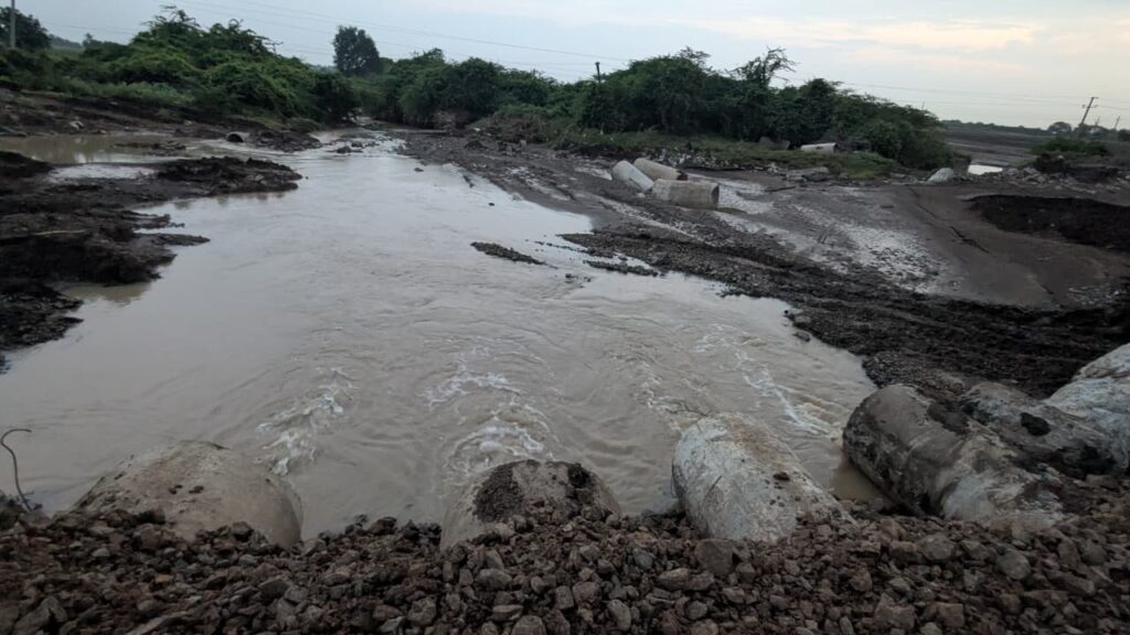 ಅಫಜಲಪುರ: ಮಳೆಯು ಜೀವನಕ್ಕೆ ಹಸಿರು ಹೊತ್ತು ತರುವುದರ ಜೊತೆಗೆ ಕೆಲವೊಮ್ಮೆ ಸಂಕಷ್ಟವನ್ನೂ ತರುತ್ತದೆ ಎಂಬುದಕ್ಕೆ ತಾಲ್ಲೂಕಿನ ಮಣ್ಣೂರ–ಕರಜಗಿ ನಡುವಿನ ಘಟನೆ ಸಾಕ್ಷಿಯಾಗಿದೆ. ಕಳೆದ ನಾಲ್ಕೈದು ದಿನಗಳಿಂದ ಸುರಿಯುತ್ತಿರುವ ನಿರಂತರ ಮಳೆಯಿಂದಾಗಿ ರಾಷ್ಟ್ರೀಯ ಹೆದ್ದಾರಿ ಕಾಮಗಾರಿ ನಡೆಯುತ್ತಿರುವ ಭಾಗದಲ್ಲಿ ಪರ್ಯಾಯ ವ್ಯವಸ್ಥೆಗಾಗಿ ನಿರ್ಮಿಸಿದ್ದ ಕಚ್ಚಾ ರಸ್ತೆ ಸಂಪೂರ್ಣ ಕೊಚ್ಚಿಕೊಂಡು ಹೋಗಿದೆ.