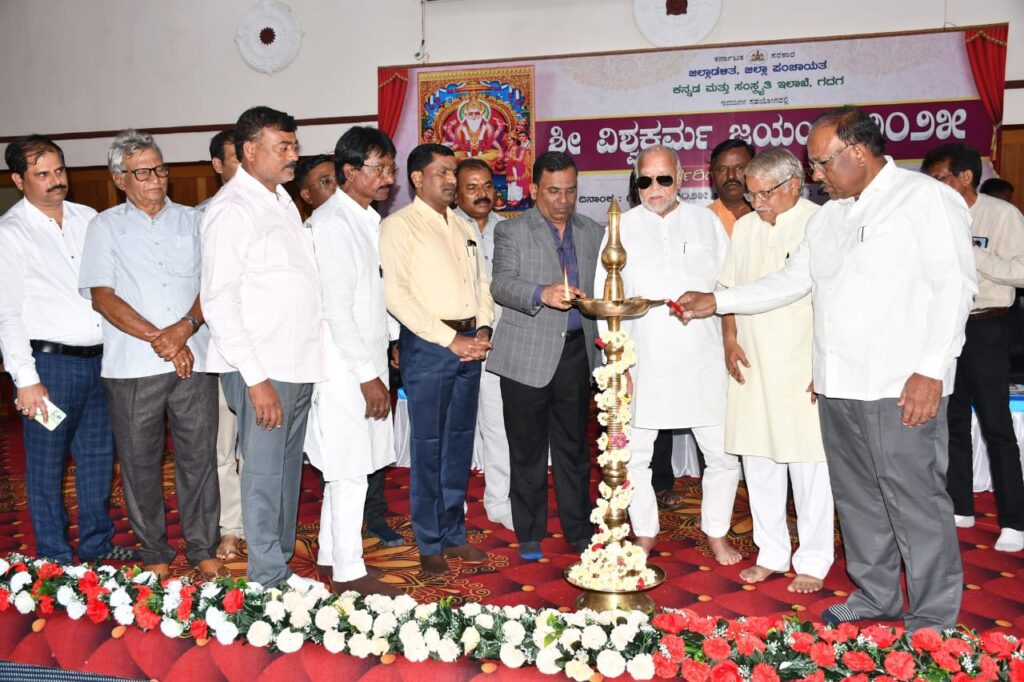 (ಕರ್ನಾಟಕ ವಾರ್ತೆ) ಸೆಪ್ಟೆಂಬರ್ 17: ದೇಶಕ್ಕೆ ವಿಶ್ವಕರ್ಮರ ಕೊಡುಗೆ ಅಪಾರವಾಗಿದೆ ಎಂದು ಅಪರ ಜಿಲ್ಲಾಧಿಕಾರಿ ಡಾ.ದುರಗೇಶ್ ಕೆ.ಆರ್. ತಿಳಿಸಿದರು.ನಗರದ ಜಿಲ್ಲಾಡಳಿತ ಭವನದ ಆಡಿಟೋರಿಯಂ ಹಾಲ್ ದಲ್ಲಿ ಬುಧವಾರ ಗದಗ ಜಿಲ್ಲಾಡಳಿತ, ಜಿಲ್ಲಾ ಪಂಚಾಯತ್, ಕನ್ನಡ ಮತ್ತು ಸಂಸ್ಕೃತಿ ಇಲಾಖೆ ಇವರುಗಳ ಸಹಯೋಗದಲ್ಲಿ ಹಮ್ಮಿಕೊಳ್ಳಲಾಗಿದ್ದ ಶ್ರೀ ವಿಶ್ವಕರ್ಮ ಜಯಂತಿ ಕಾರ್ಯಕ್ರಮದ ಅಧ್ಯಕ್ಷತೆ ವಹಿಸಿ ಮಾತನಾಡಿದರು.
