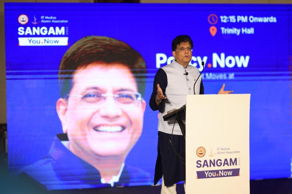ಕೇಂದ್ರ ವಾಣಿಜ್ಯ ಮತ್ತು ಕೈಗಾರಿಕಾ ಸಚಿವರಾದ ಶ್ರೀ ಪಿಯೂಷ್ ಗೋಯಲ್ ಅವರು ಬೆಂಗಳೂರಿನಲ್ಲಿ ನಡೆದ ಐಐಟಿ ಮದ್ರಾಸ್ನ ಸಂಗಮ್ 2025 ಜಾಗತಿಕ ಅನ್ವೇಷಣೆ ಮತ್ತು ಹಳೆಯ ವಿದ್ಯಾರ್ಥಿಗಳ ಶೃಂಗಸಭೆಯಲ್ಲಿ ಭಾಗವಹಿಸಿದರುಅಮೃತ ಕಾಲದಲ್ಲಿ ಕೊಡುಗೆ ನೀಡಿ